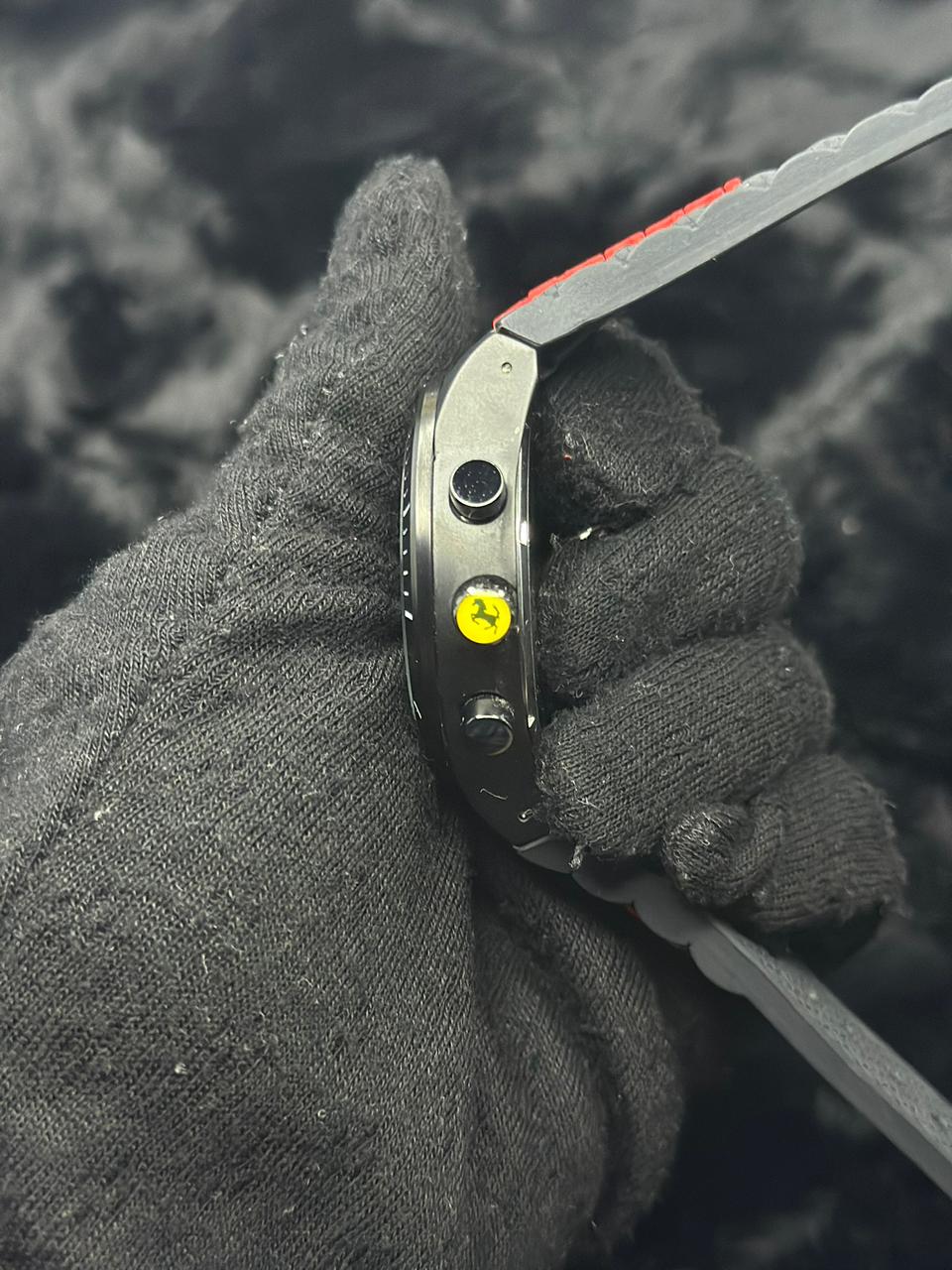 Crafted with a durable stainless steel case and a premium waterproof build, it’s made to keep up with your lifestyle. The dynamic dial features a precise date display and striking chronograph-style design, enhanced by signature Ferrari-inspired branding across the strap and face.