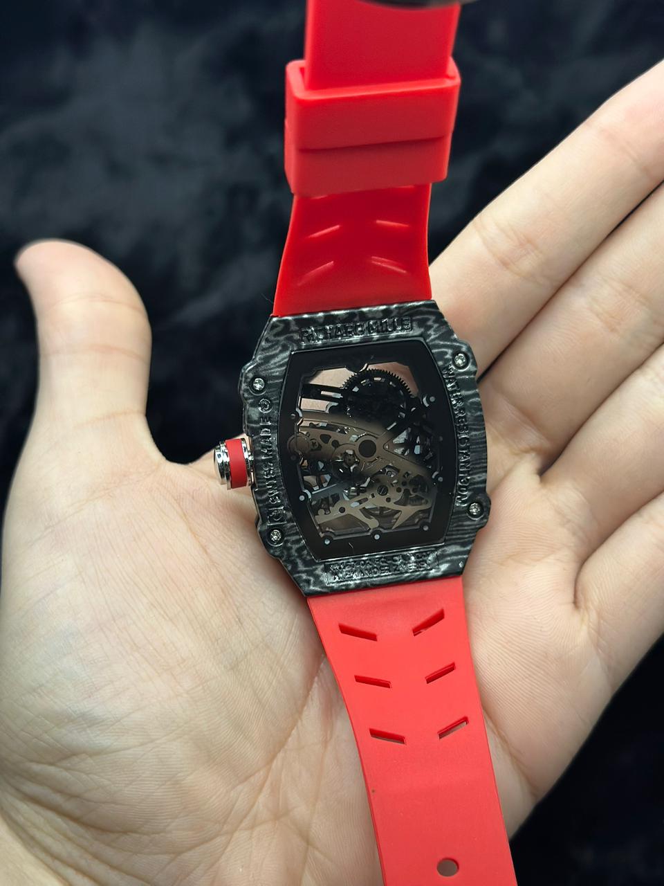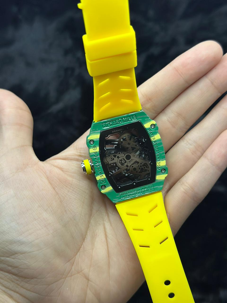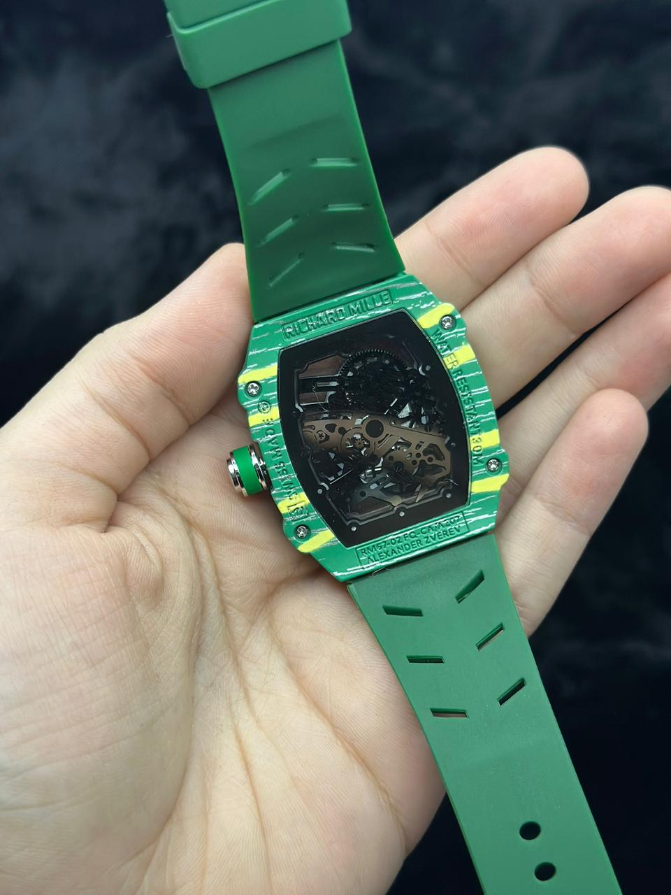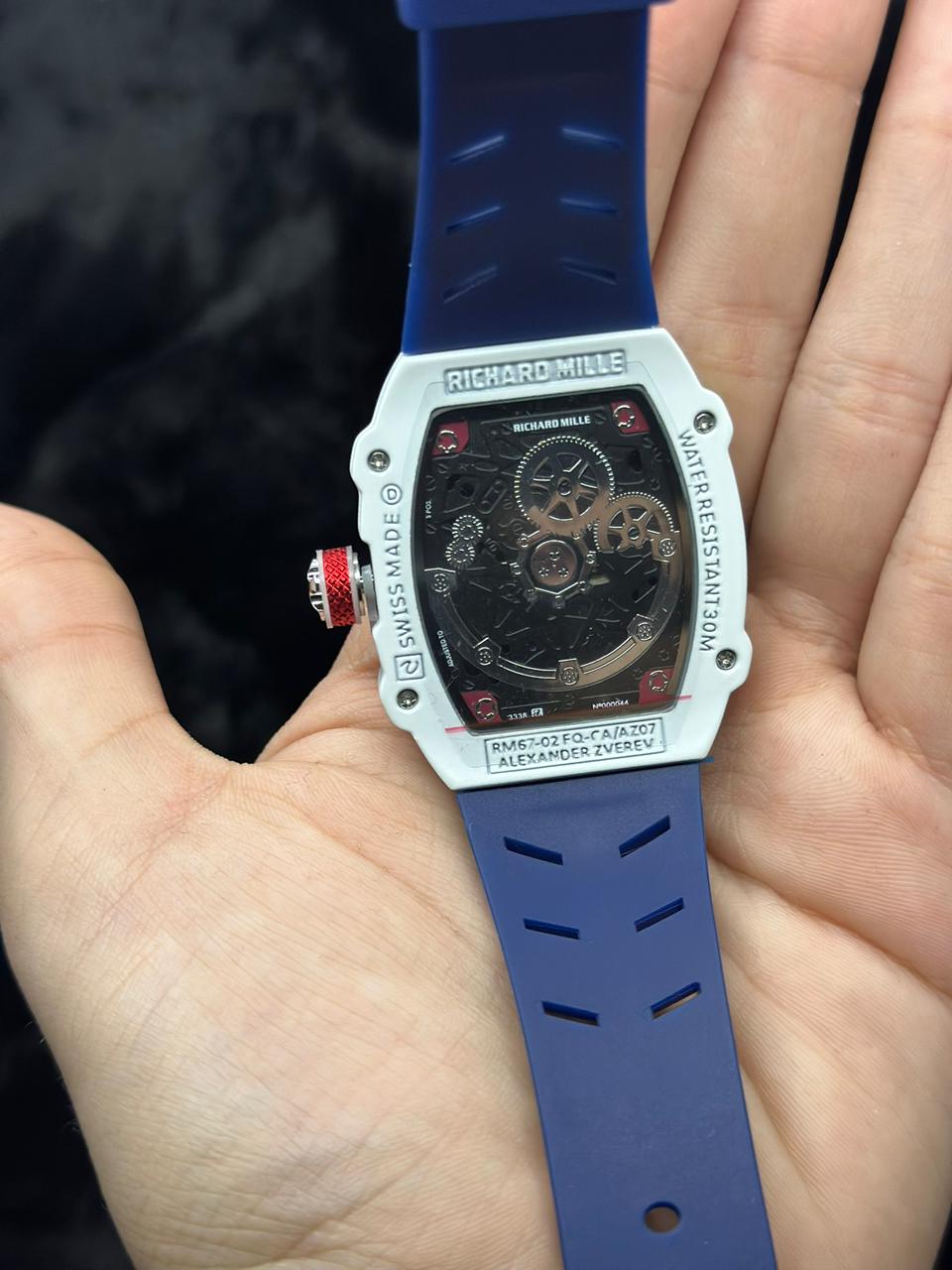 Richard Mille 67-02 Skeleton Watch – Swiss-made precision meets celebrity style! Featuring a skeleton glass dial and premium glass construction in a slim, elegant body, this watch is worn by icons like Hardik Pandya and Karan Aujla. Water resistant with a date feature, it’s perfect for luxury enthusiasts. Free delivery and premium packaging included.
